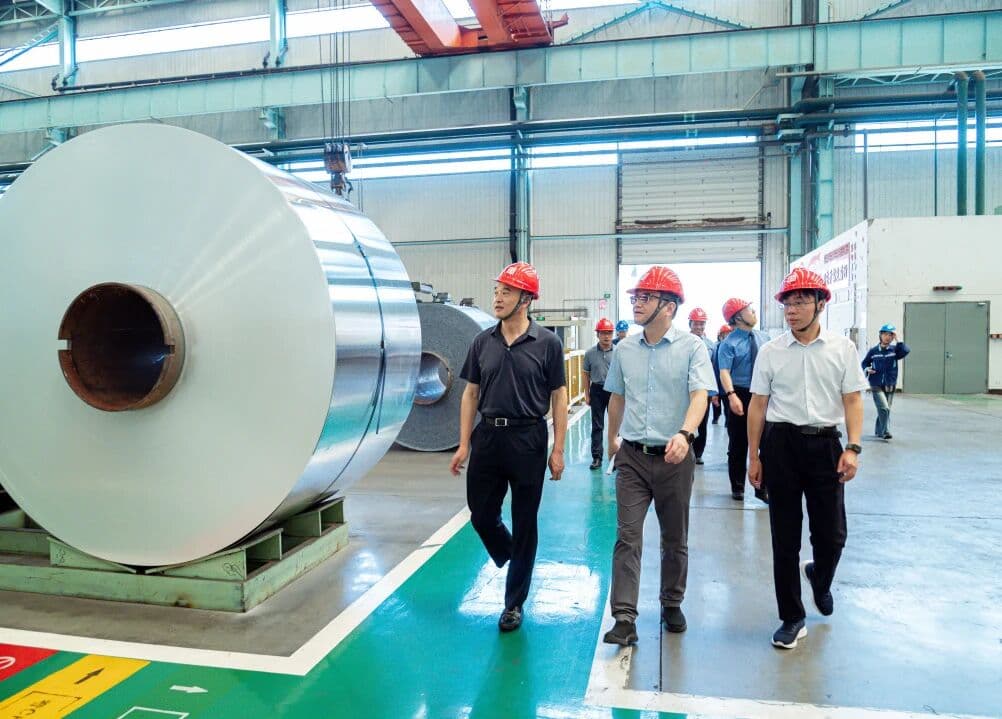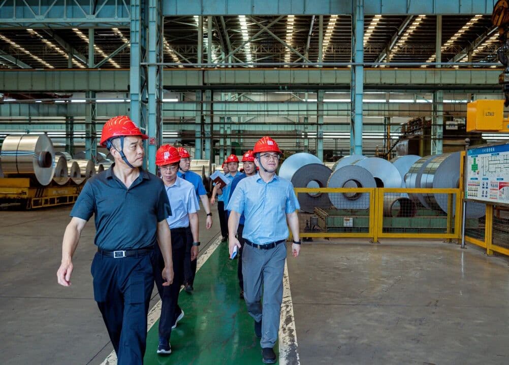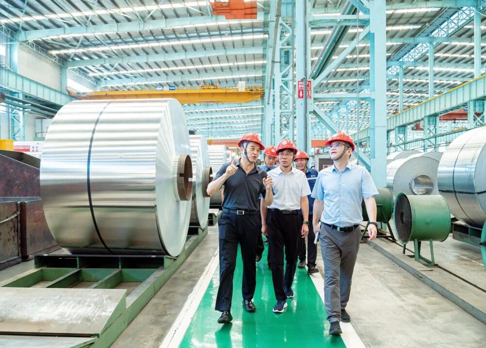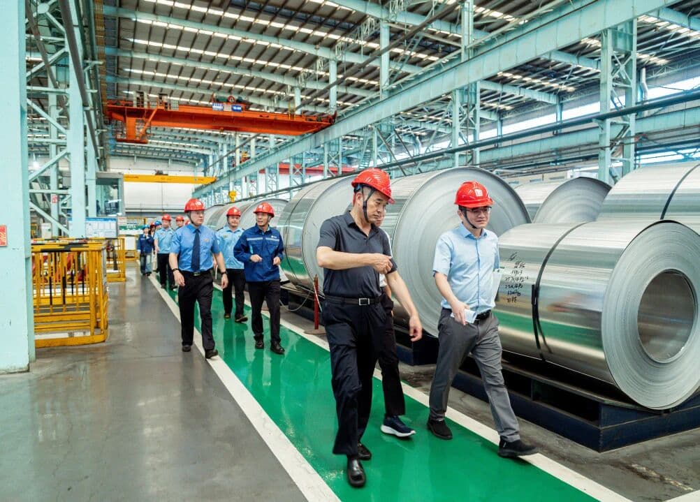 环球体育最新版董事长沈健生带领与会领导参观了银邦生产车间,了解生产流程、安全保障措施等情况。