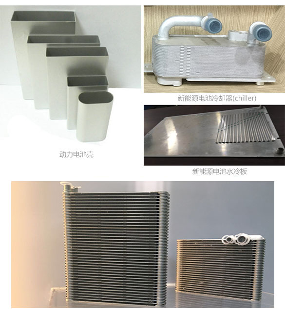 随着国家大力倡导节能减排,汽车轻量化大趋势下,新能源汽车将最终成就消费者的选择,银邦积极的洞察这一需求的变化,在新能源汽车热交换系统领域内,积极与热交换器制造商合作,在电池冷却器、电池水冷板和电池外壳材料等方面推广应用铝合金复合材料。